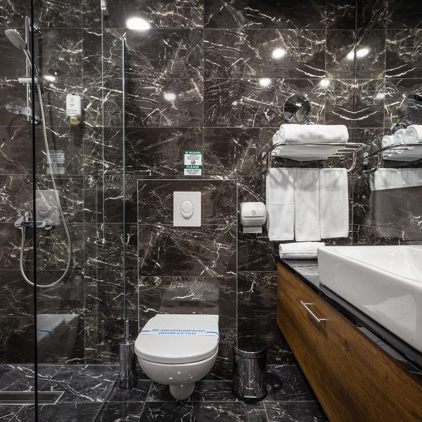 • Mini bar | Light above the bed | Living/siting/writing area with chair and table | Luggage locker | Wardrobe | Hangers | Pillows | Quilt | Pike | Safety deposit box | Carpeted | Dark curtains | Windows may be opened | Windows sound proof | Air-conditioned |